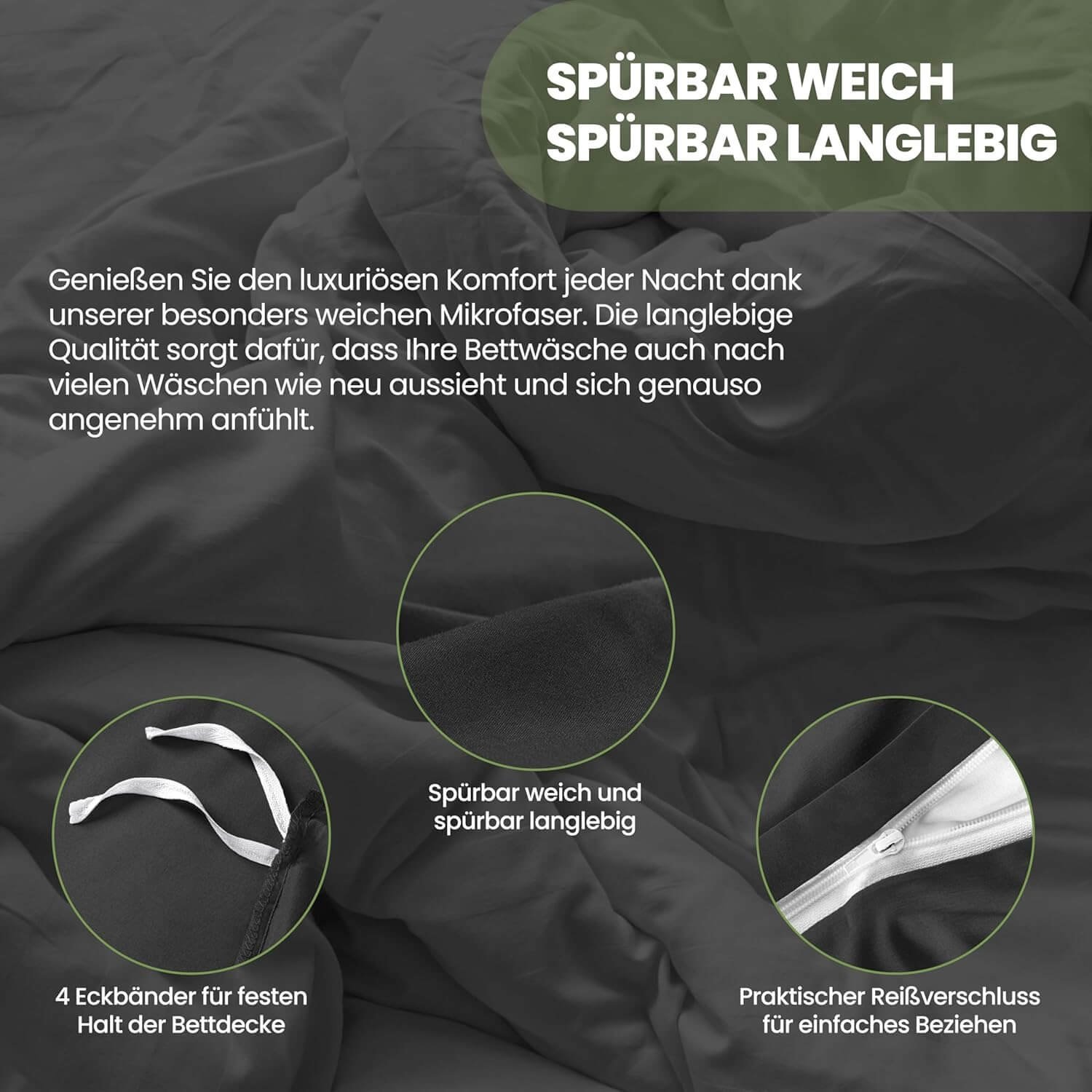 Luxuriöse Mikrofaser-Bettwäsche 135 x 200 cm – mit Reißverschluss – Kissenbezüge 80 x 80 cm – weich, atmungsaktiv & preiswert